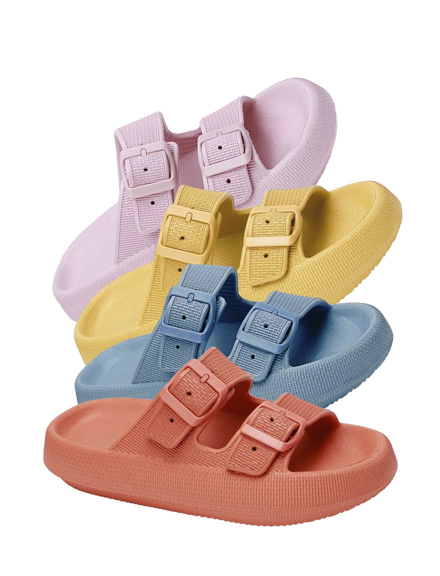 Os materiais priorizam a leveza e a ventilação. O design assegura contenção adequada do pé, com tiras ajustáveis para personalizar o encaixe. A sandália é indicada para quem busca uma opção com elementos de suporte ortopédico integrados a um calçado de uso cotidiano.