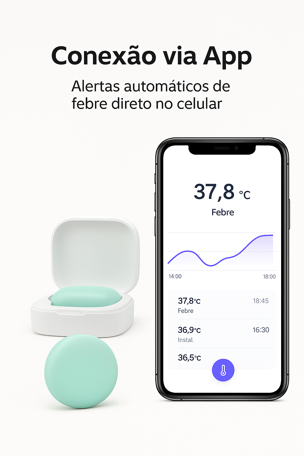 O Termômetro Inteligente Genial T31 e a solução completa para monitoramento de temperatura corporal infantil. Desenvolvido para oferecer segurança e praticidade para pais e mães, este dispositivo permite o acompanhamento continuo da febre com alertas direto no seu celular. Características Principais: Monitoramento continuo de temperatura 24 horas por dia Alertas instantâneos no smartphone quando há variações de temperatura Sensor de precisão hospitalar com alta acurácia Aplicativo intuitivo de fácil utilização Design hipoalérgico e confortável para pele de bebes e crianças Bateria de longa duração - ate 48 horas de uso continuo Compatível com iOS e Android Alcance de ate 30 metros do dispositivo Especificações Técnicas: Faixa de medição: 32°C a 42°C Precisão: ±0.1°C Conectividade: Bluetooth Material: Livre de BPA Idade recomendada: 0 a 12 anos Certificação ANVISA Como Funciona: Fixe o sensor na pele da criança Conecte o dispositivo ao aplicativo Genial Care Acompanhe a temperatura em tempo real pelo celular Benefícios para os Pais: Monitoramento preciso da febre infantil Permite descanso tranquilo com sistema de alertas Histórico completo de temperaturas para mostrar ao pediatra Ideal para uso noturno sem interromper o sono da criança Múltiplos perfis para famílias com mais de um filho Kit Inclui: 1 unidade do Termômetro Inteligente Genial T31 10 adesivos descartáveis Cabo de carregamento USB Manual de instruções Garantia e Suporte: Garantia de 12 meses Produto regularizado na ANVISA Suporte técnico especializado Entrega para todo o Brasil Este termômetro inteligente e ideal para mães e pais que buscam tecnologia, segurança e praticidade no cuidado diário de seus filhos. Oferece monitoramento profissional da febre com a comodidade de receber alertas diretamente no celular, permitindo um cuidado mais eficiente e tranquilo para toda a família.