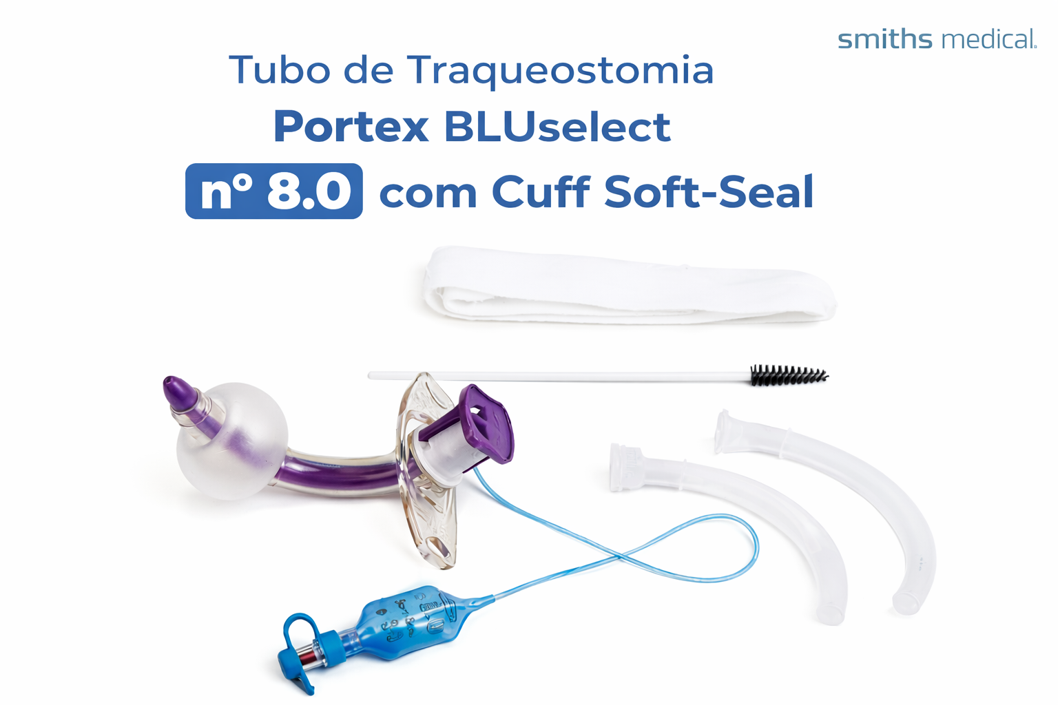 O Tubo de Traqueostomia Portex BLUselect® nº 8.0 com Cuff Soft-Seal, da Smiths Medical, é um dispositivo médico indicado para manutenção das vias aéreas em pacientes submetidos à traqueostomia, tanto em ambiente hospitalar quanto em home care, sempre sob prescrição e acompanhamento profissional.